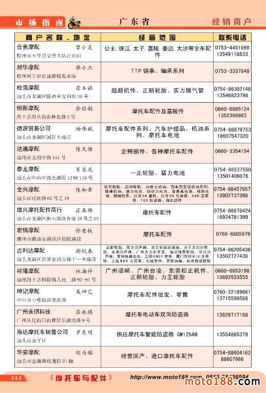 廣東省摩配經(jīng)銷商戶
