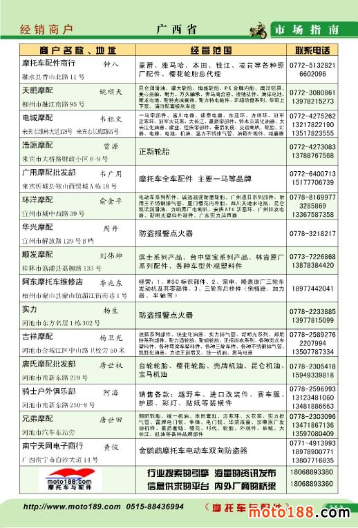 廣西省摩托車配件經(jīng)銷商戶