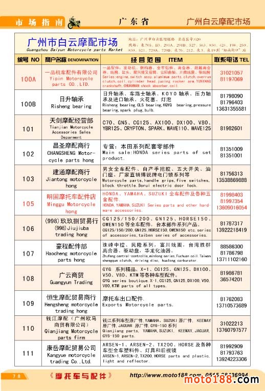 各摩配市場(chǎng)詳細(xì)資料請(qǐng)注冊(cè)我們的VIP會(huì)員咨詢 電話:0515-88436994 QQ:309362965、842467029、1051652573