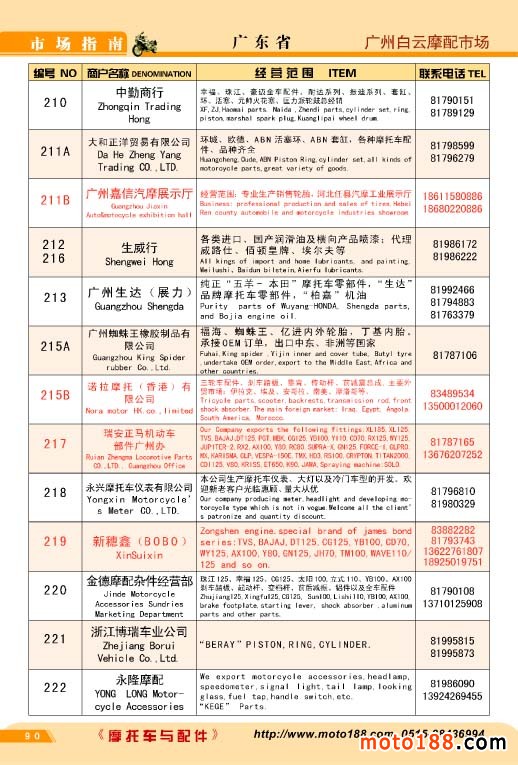 廣州白云摩配市場名錄