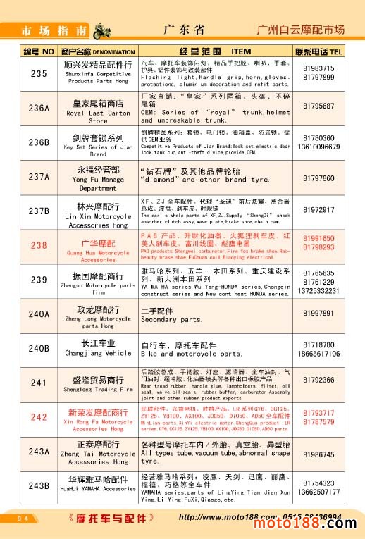 各摩配市場(chǎng)詳細(xì)資料請(qǐng)注冊(cè)我們的VIP會(huì)員咨詢 電話:0515-88436994 QQ:309362965、842467029、1051652573