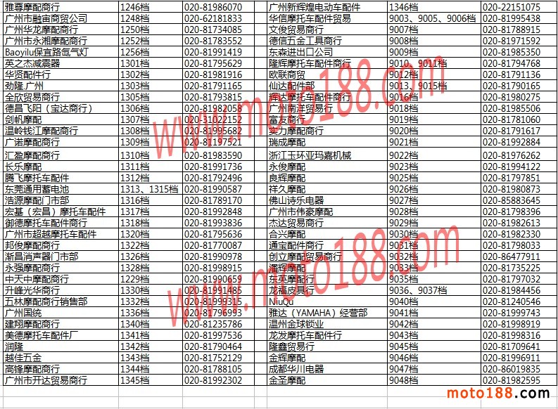 廣州白云摩配市場(chǎng)經(jīng)銷商名錄