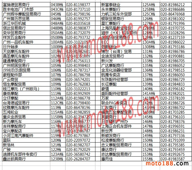 廣州白云摩配市場(chǎng)經(jīng)銷商名錄