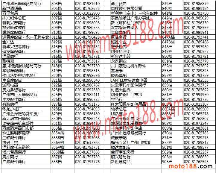 廣州白云摩配市場(chǎng)經(jīng)銷商名錄