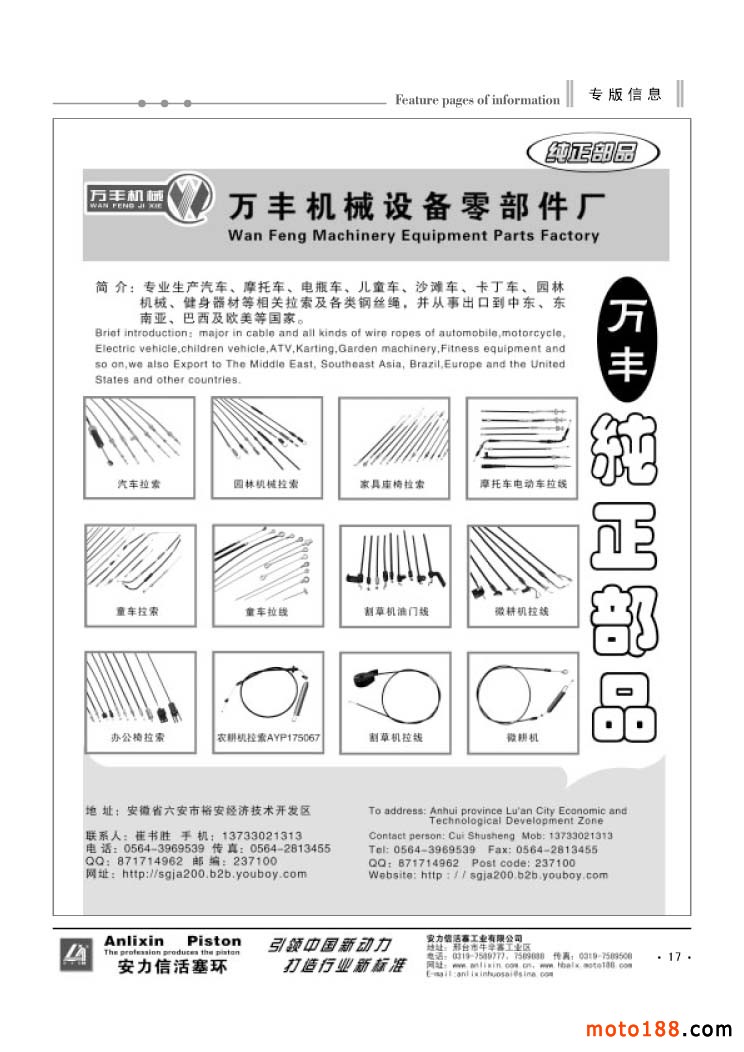 各摩配市場(chǎng)詳細(xì)資料請(qǐng)注冊(cè)我們的VIP會(huì)員咨詢 電話:0515-88436994 QQ:309362965、842467029、1051652573