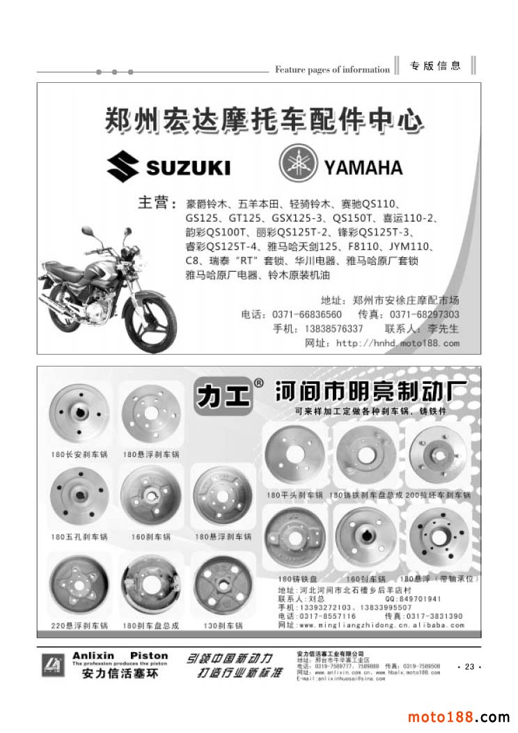 23 鄭州宏達摩托車配件中心/河間市明亮制動廠
