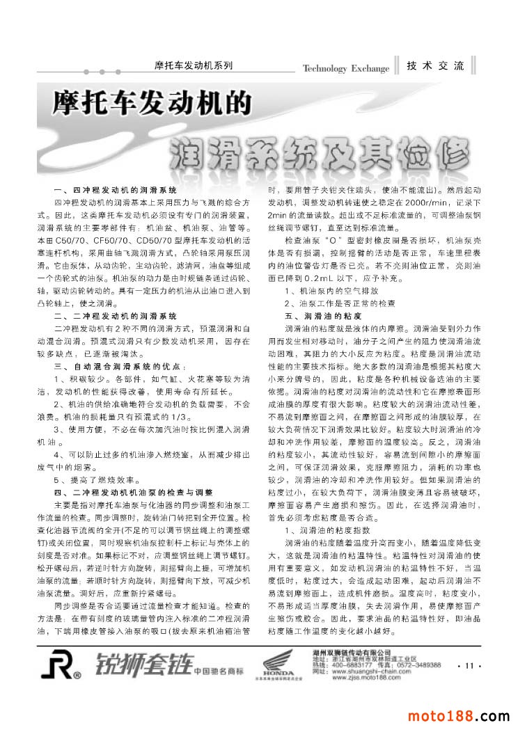 摩托車發(fā)動機潤滑系統(tǒng)及其檢修