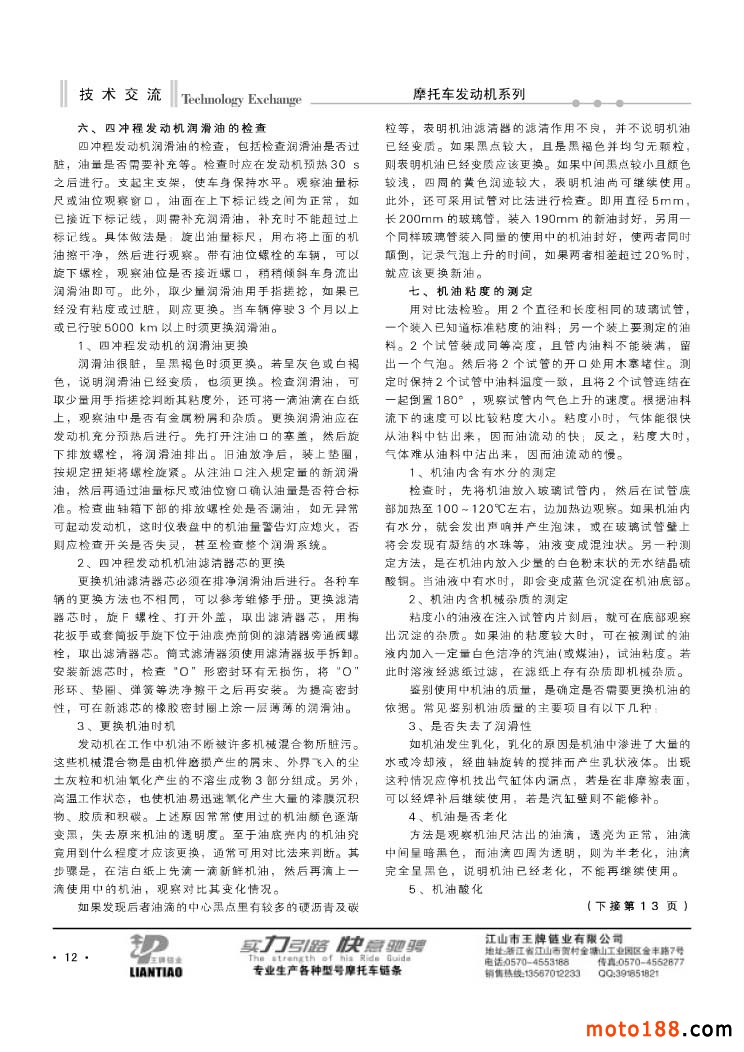 摩托車發(fā)動(dòng)機(jī)潤(rùn)滑系統(tǒng)及其檢修