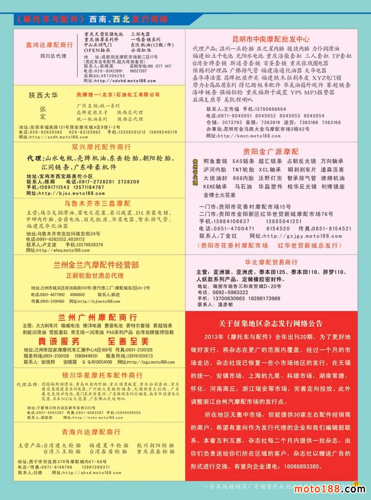3、《中國摩托車配件生產(chǎn)企業(yè)大全(網(wǎng)址總匯)》第十一次升級版,在會上及各大市場同時發(fā)送。全國大市場還會送書上門,沒參會的企業(yè)可在門上坐等,愿意付郵費(快遞到付也可)的企業(yè)我們都會快遞送達(dá)。