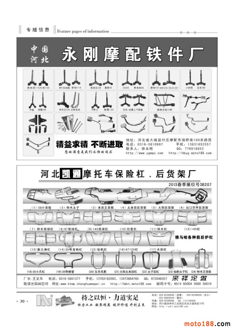 3、《中國摩托車配件生產(chǎn)企業(yè)大全(網(wǎng)址總匯)》第十一次升級版,在會上及各大市場同時發(fā)送。全國大市場還會送書上門,沒參會的企業(yè)可在門上坐等,愿意付郵費(fèi)(快遞到付也可)的企業(yè)我們都會快遞送達(dá)。