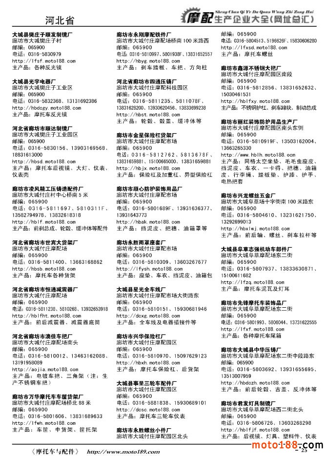 《摩托車與配件生產(chǎn)企業(yè)大全》打造行業(yè)信息的航母