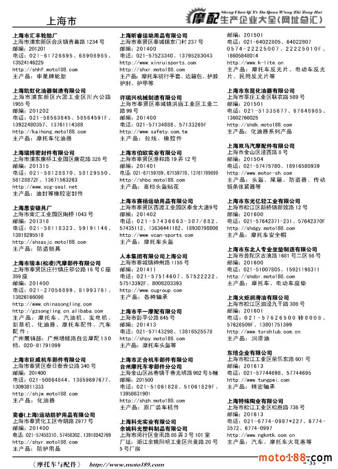 《摩托車與配件生產(chǎn)企業(yè)大全》打造行業(yè)信息的航母