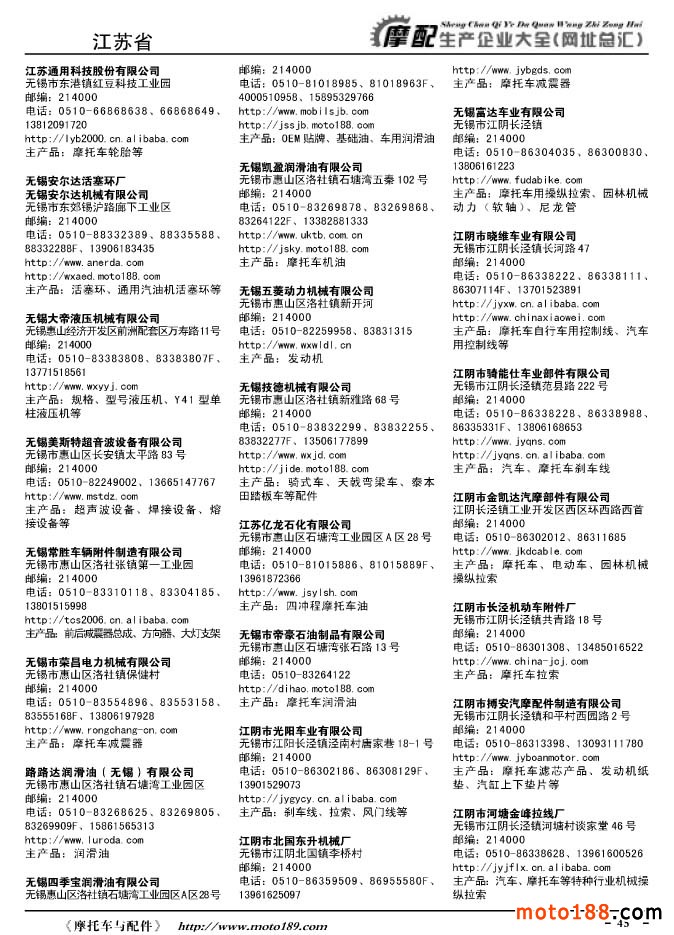 《摩托車與配件生產(chǎn)企業(yè)大全》打造行業(yè)信息的航母
