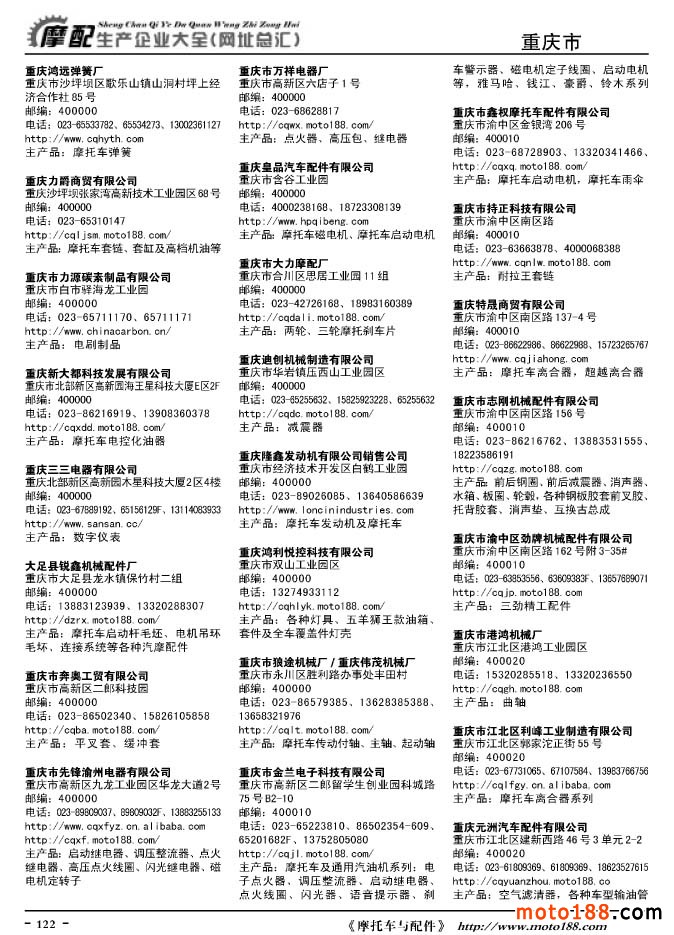 《摩托車與配件生產(chǎn)企業(yè)大全》打造行業(yè)信息的航母