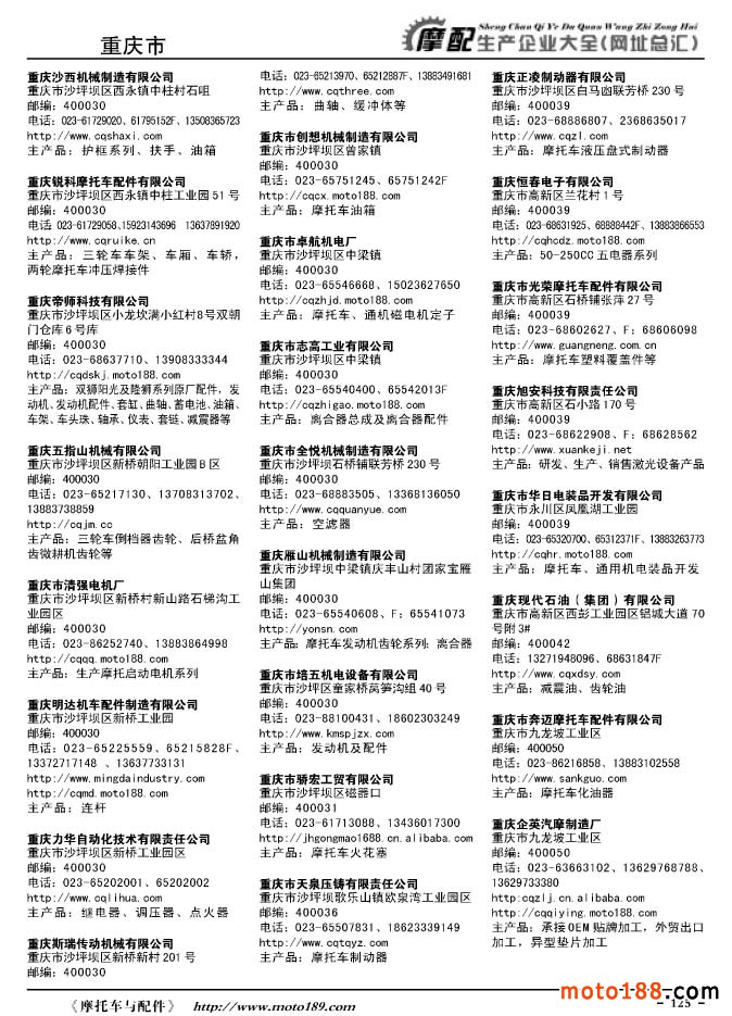 《摩托車與配件生產(chǎn)企業(yè)大全》打造行業(yè)信息的航母