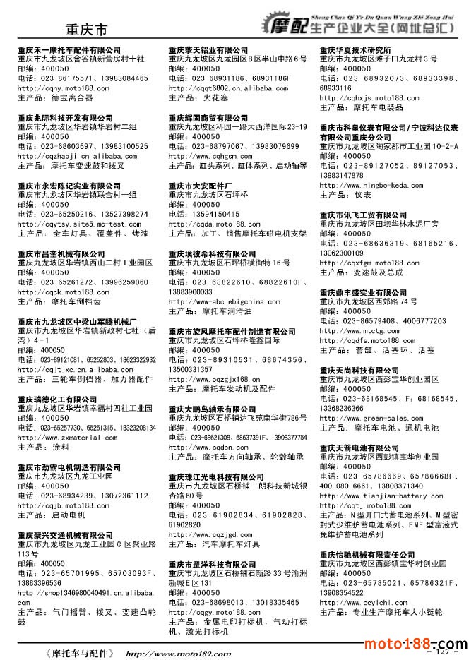 《摩托車(chē)與配件生產(chǎn)企業(yè)大全》打造行業(yè)信息的航母