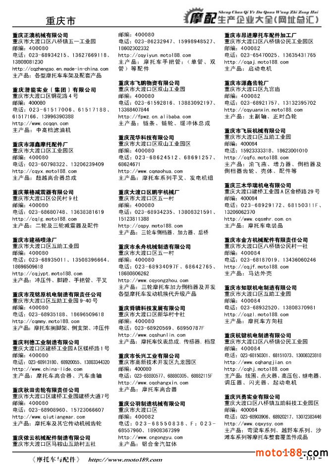 《摩托車與配件生產(chǎn)企業(yè)大全》打造行業(yè)信息的航母