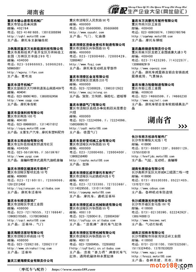 《摩托車與配件生產(chǎn)企業(yè)大全》打造行業(yè)信息的航母