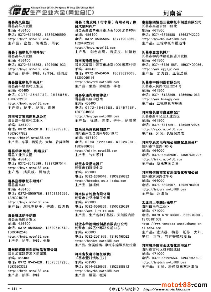 《摩托車與配件生產(chǎn)企業(yè)大全》打造行業(yè)信息的航母