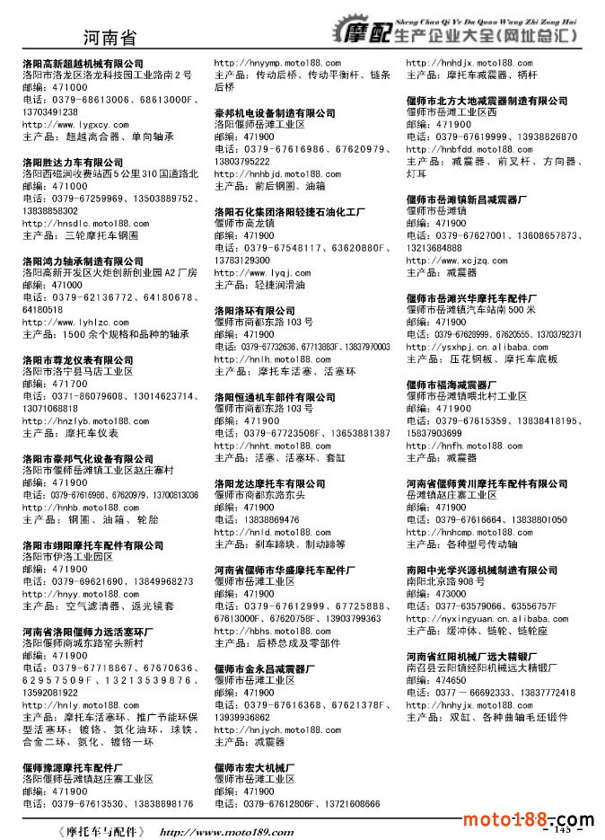 《摩托車與配件生產(chǎn)企業(yè)大全》打造行業(yè)信息的航母