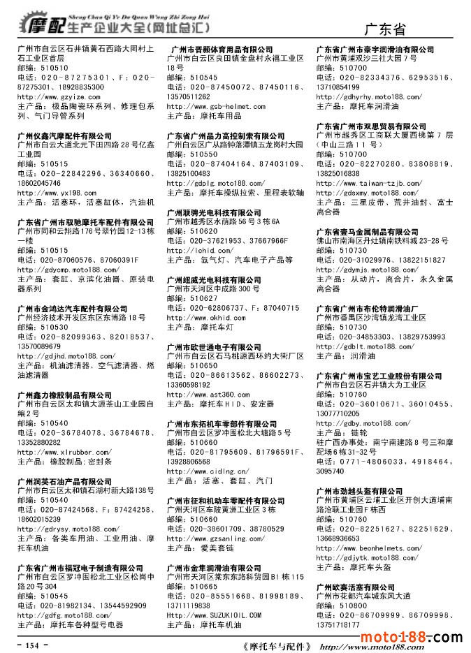 《摩托車與配件生產(chǎn)企業(yè)大全》打造行業(yè)信息的航母