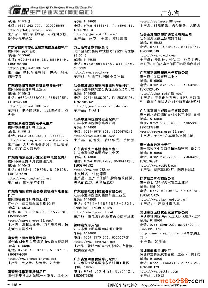 《摩托車(chē)與配件生產(chǎn)企業(yè)大全》打造行業(yè)信息的航母