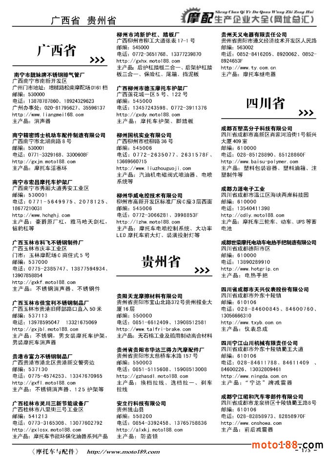 《摩托車與配件生產(chǎn)企業(yè)大全》打造行業(yè)信息的航母