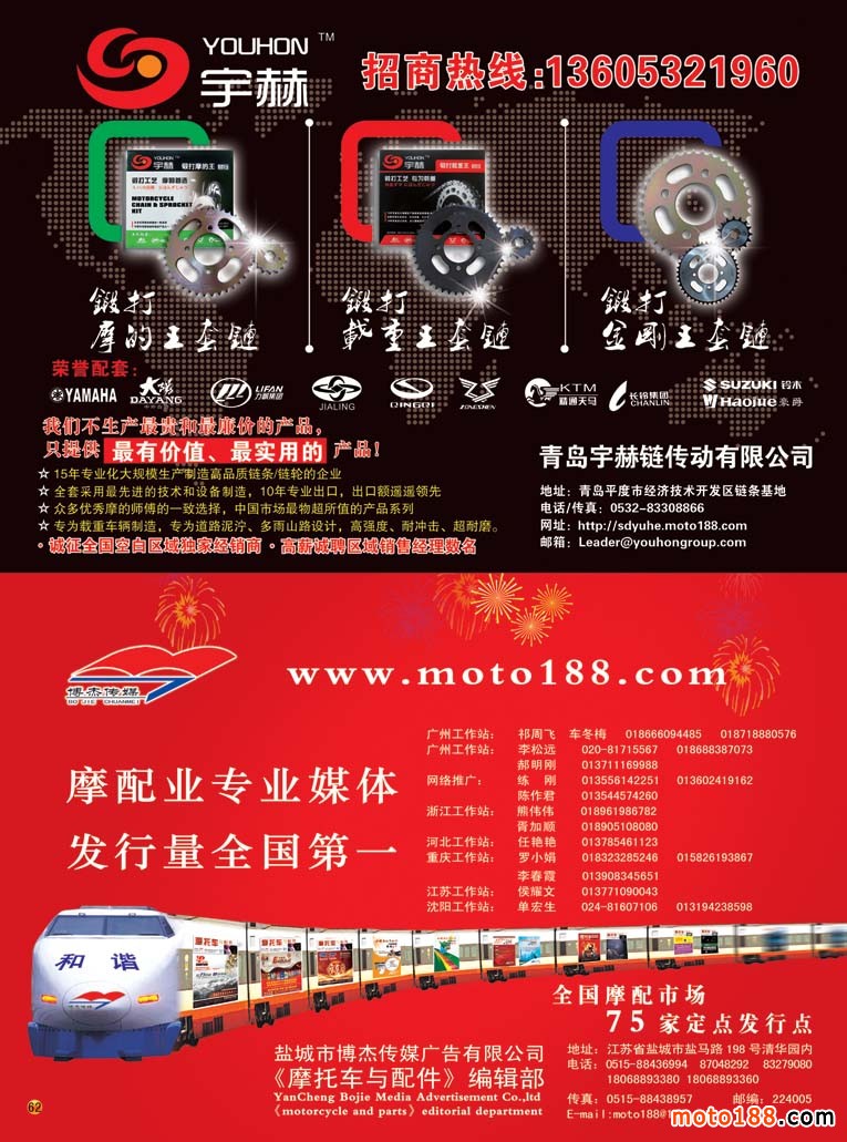 自我們的2010版《摩托車與配件生產(chǎn)企業(yè)大全》第十次升級(jí)版出刊后,已經(jīng)發(fā)行三年了?;仡櫸覀儚?010年至今的發(fā)行工作:2010年11月在南京全摩會(huì)上首發(fā),2011年4月長沙全摩會(huì),2011年11月寧波全摩會(huì),2012年4月重慶全摩會(huì)上大量發(fā)放。除了在這些大型會(huì)議上發(fā)放之外,我們也在江門、義烏、重慶、廣交會(huì)等地方性及國際性會(huì)議上及各地摩配市場發(fā)放,發(fā)行范圍涉及整車、配件及外貿(mào)企業(yè)。這本書受到行業(yè)各類企業(yè)歡迎,是因?yàn)樗切袠I(yè)最全面、最權(quán)威的采購參考資料。在2012年11月召開的廣州全摩會(huì)上,我們將進(jìn)行最后一次大規(guī)模的發(fā)放。至此,我們?nèi)甑陌l(fā)行承諾就將履行完畢。