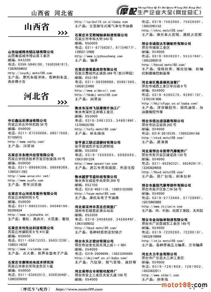 《摩托車與配件生產(chǎn)企業(yè)大全》打造行業(yè)信息的航母