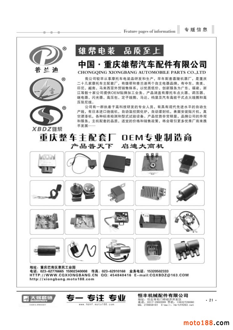 這次會(huì)上力推的是我們《中國(guó)摩托車配件生產(chǎn)企業(yè)大全(網(wǎng)址總匯)》第十一次的升級(jí)版本,這次升級(jí)版時(shí)間跨度為三年。這三年行業(yè)大調(diào)整,在書中也得到了體現(xiàn)。這次升級(jí)版最主要的亮點(diǎn)是配件制造業(yè)網(wǎng)址大匯總,通過(guò)本書可以查到你所需要瀏覽的網(wǎng)站,你能通過(guò)企業(yè)網(wǎng)站了解到企業(yè)更多的信息,這是我們將目錄數(shù)據(jù)庫(kù)信息和網(wǎng)絡(luò)信息對(duì)接的嘗試,傳統(tǒng)和現(xiàn)代互為補(bǔ)充。今后這項(xiàng)工作還要不斷的完善,尤其是我們moto188的網(wǎng)站,力爭(zhēng)擴(kuò)大網(wǎng)站的服務(wù)功能。確保對(duì)行業(yè)信息的快速處理,還要力求信息準(zhǔn)確,有一定的公信力。