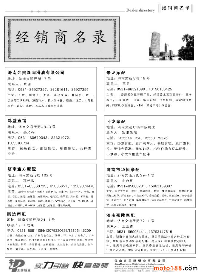 在4月29日全摩會結(jié)束之后,也有兩個與行業(yè)有關(guān)的會議,即5月6日的第23屆中國國際自行車展覽暨2013年中國國際摩托車及零部件交易會在上海新國際展覽中心召開。這次會議是以自行車及配件唱主角,電動車和摩托車作為配角而舉辦的大型會議,這次會議在自行車行業(yè)是規(guī)模最大的會議。與我們摩托車行業(yè)有關(guān)的一些從事外貿(mào)的整車廠,如建設(shè)、錢江等四五家廠家在附展館有一專門展廳。另外,輪胎企業(yè)有一個專門的展館,展品是外胎和內(nèi)胎。其中外胎來的大廠較多,也較全,比如正新、建大、朝陽,國內(nèi)有影響力的都基本來參會了,是這次會議的亮點。上海會議結(jié)束后,我們帶了部分外貿(mào)報紙和雜志在上海幾個市場進行了發(fā)放,同時走訪了這些市場。自去年上半年,宜川市場拆遷后,在古浪路和滬太路分別形成了兩個市場。我們?nèi)チ嗣恳患疑虘?,收集市場客戶資料,為我們今年下半年《華東市場指南》的出版進行準備。這兩個市場都不算大,每一個市場有六七十戶做摩配生意的,有不少商家就是從宜川市場搬來的。還有兩個小市場,科雄和星中路市場,商戶比年初又有減少,市場明顯在萎縮。我們這次的《華東市場指南升級版》原準備將江西不收錄其中,準備和中南地區(qū)一起編入,但如果華東市場萎縮輻度較大,江西省還將編入華東地區(qū)。