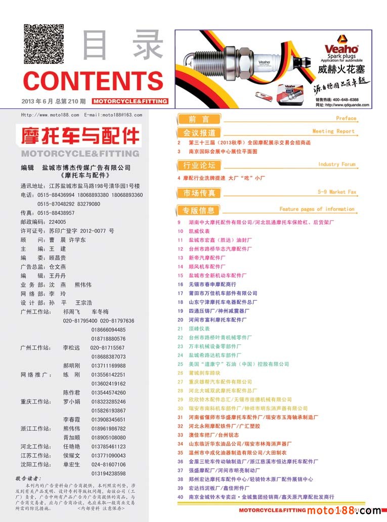時(shí)節(jié)即將進(jìn)入盛夏了,南方的天氣也越來(lái)越熱,國(guó)內(nèi)的內(nèi)銷(xiāo)市場(chǎng),尤其是南方地區(qū)的市場(chǎng)將轉(zhuǎn)成淡季。根據(jù)我們今年的出刊計(jì)劃,我們從這個(gè)月也就是六月份開(kāi)始至八月份每月出一期雜志。本期雜志是在六月中旬出刊;7月雜志將在七月上旬出刊,同時(shí)在中旬還會(huì)出刊今年的第三期《摩托車(chē)與配件外貿(mào)報(bào)》即夏季版(十月出刊秋季版);八月初出刊8月版;八月底至九月初出刊9月上半期雜志,十月中下旬出刊9月下半期雜志。請(qǐng)大家注意我們的出刊日期,及時(shí) 到我們的發(fā)行點(diǎn)領(lǐng)取。我們也會(huì)在moto188網(wǎng)站的公告欄及時(shí)通知大家雜志發(fā)貨的具體時(shí)間。