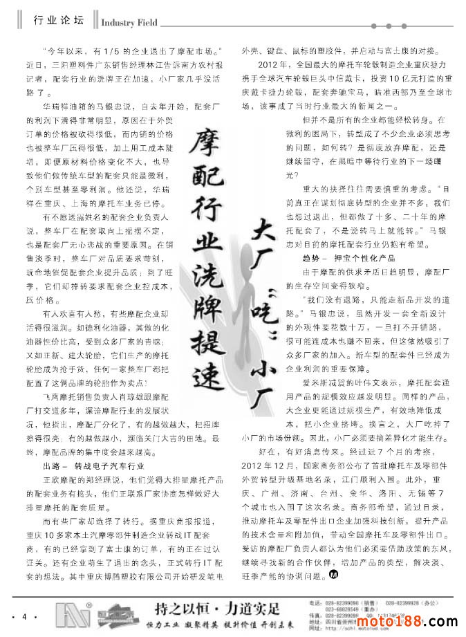 4 摩配行業(yè)洗牌提速 大廠“吃”小廠