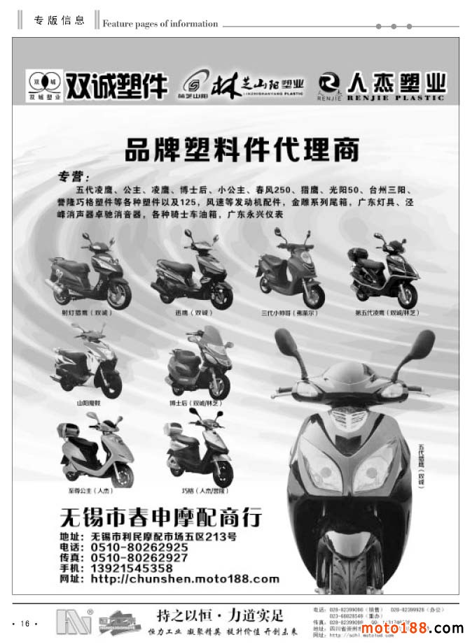 在這個(gè)淡季里,我們還將去西北和東北送書、送報(bào)上萬,走訪調(diào)研這些地區(qū)的市場。再次強(qiáng)調(diào),我們送的書是今年上半年在濟(jì)南全摩會首發(fā)的新版《中國摩托車配件生產(chǎn)企業(yè)大全》,送的報(bào)紙是《摩托車與配件外貿(mào)報(bào)》。我們的雜志還是由全國各發(fā)行點(diǎn)直接發(fā)放給市場上的經(jīng)營商戶。目前《大全》已完成在山東、河北、廣東和重慶等省市的主要市場的發(fā)行。今年年底之前完成對全國市場的投放。