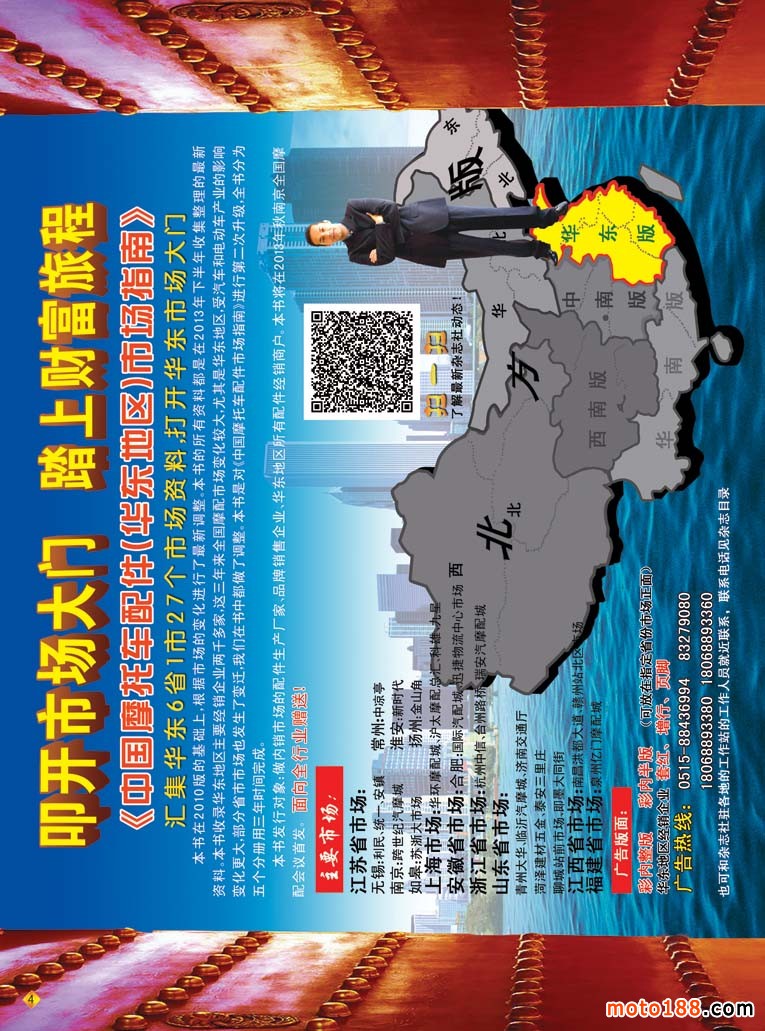 在這個(gè)淡季里,我們還將去西北和東北送書、送報(bào)上萬(wàn),走訪調(diào)研這些地區(qū)的市場(chǎng)。再次強(qiáng)調(diào),我們送的書是今年上半年在濟(jì)南全摩會(huì)首發(fā)的新版《中國(guó)摩托車配件生產(chǎn)企業(yè)大全》,送的報(bào)紙是《摩托車與配件外貿(mào)報(bào)》。我們的雜志還是由全國(guó)各發(fā)行點(diǎn)直接發(fā)放給市場(chǎng)上的經(jīng)營(yíng)商戶。目前《大全》已完成在山東、河北、廣東和重慶等省市的主要市場(chǎng)的發(fā)行。今年年底之前完成對(duì)全國(guó)市場(chǎng)的投放。