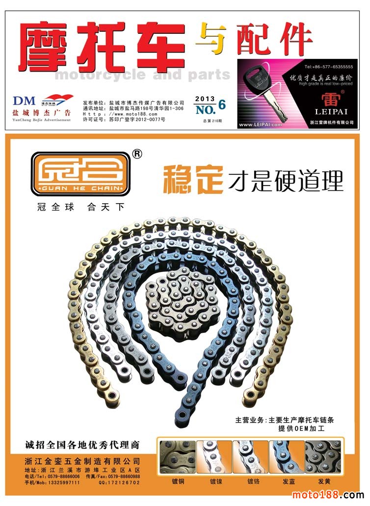 時(shí)節(jié)即將進(jìn)入盛夏了,南方的天氣也越來(lái)越熱,國(guó)內(nèi)的內(nèi)銷(xiāo)市場(chǎng),尤其是南方地區(qū)的市場(chǎng)將轉(zhuǎn)成淡季。根據(jù)我們今年的出刊計(jì)劃,我們從這個(gè)月也就是六月份開(kāi)始至八月份每月出一期雜志。本期雜志是在六月中旬出刊;7月雜志將在七月上旬出刊,同時(shí)在中旬還會(huì)出刊今年的第三期《摩托車(chē)與配件外貿(mào)報(bào)》即夏季版(十月出刊秋季版);八月初出刊8月版;八月底至九月初出刊9月上半期雜志,十月中下旬出刊9月下半期雜志。請(qǐng)大家注意我們的出刊日期,及時(shí) 到我們的發(fā)行點(diǎn)領(lǐng)取。我們也會(huì)在moto188網(wǎng)站的公告欄及時(shí)通知大家雜志發(fā)貨的具體時(shí)間。