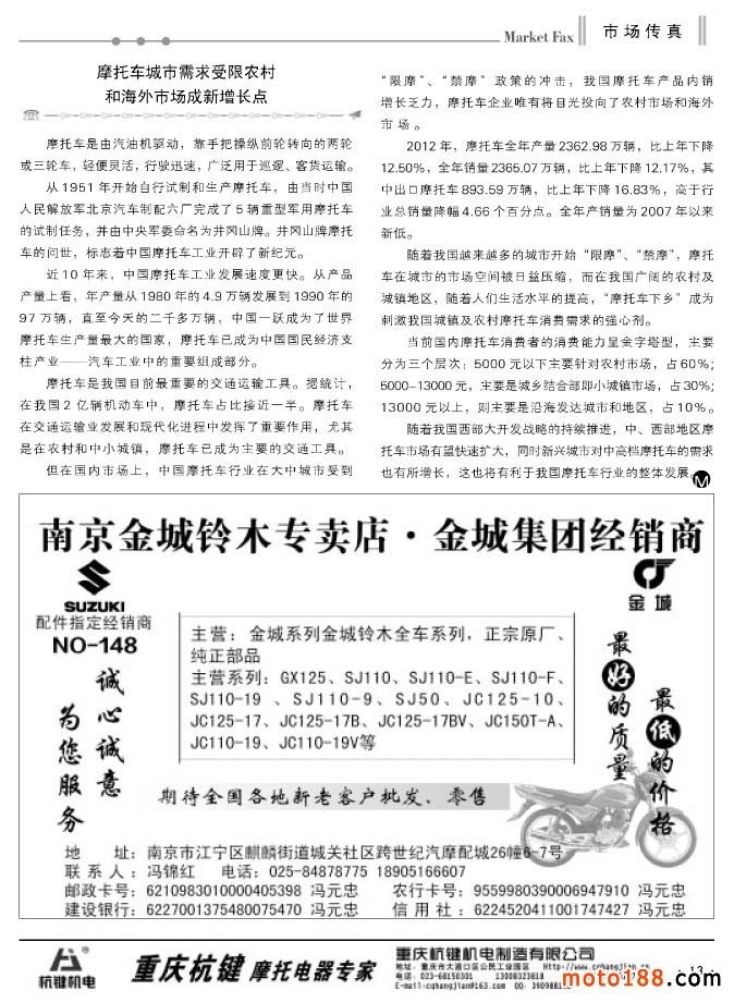 華東市場對我們來說總體感覺是:每況愈下,盡管這樣也有許多優(yōu)秀的企業(yè),優(yōu)秀的商戶,他們在還堅持,在千方百計的拓展市場,既是為了生存和發(fā)展也是為了一項事業(yè)。在物欲橫流、人心浮燥的外部環(huán)境下,行業(yè)有這樣的守望者,行業(yè)也會生生不息、綿延不絕。隨著東部市場淡季的結束,他們也會進入到收獲期。假如你有疑問,那么在十月金秋南京的秋摩會上,你會感受到這份努力的果實,這份執(zhí)著而帶來的回報。行業(yè)的總體盤子在不斷擴大,摩托車后市場的作為也越來越大,這是優(yōu)勝劣汰的進化過程,進化的結果是強者越強,在困難時候能堅守的必定是未來的成功者。當然那些轉身離開者也未必都全是失敗者,會有新的商機靠他們?nèi)ゲ蹲?,只要勤勤懇懇、踏踏實實地努力,天道也會酬勤?br />