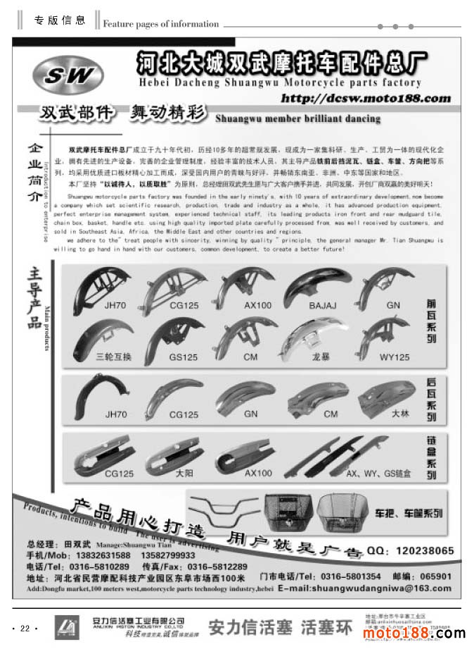 華東市場對我們來說總體感覺是:每況愈下,盡管這樣也有許多優(yōu)秀的企業(yè),優(yōu)秀的商戶,他們在還堅持,在千方百計的拓展市場,既是為了生存和發(fā)展也是為了一項事業(yè)。在物欲橫流、人心浮燥的外部環(huán)境下,行業(yè)有這樣的守望者,行業(yè)也會生生不息、綿延不絕。隨著東部市場淡季的結(jié)束,他們也會進入到收獲期。假如你有疑問,那么在十月金秋南京的秋摩會上,你會感受到這份努力的果實,這份執(zhí)著而帶來的回報。行業(yè)的總體盤子在不斷擴大,摩托車后市場的作為也越來越大,這是優(yōu)勝劣汰的進化過程,進化的結(jié)果是強者越強,在困難時候能堅守的必定是未來的成功者。當(dāng)然那些轉(zhuǎn)身離開者也未必都全是失敗者,會有新的商機靠他們?nèi)ゲ蹲?,只要勤勤懇懇、踏踏實實地努力,天道也會酬勤?br />        七月流火,盛夏轉(zhuǎn)秋,我們的雜志又到了出雙刊的月份了。今年的九、十、十一三個月我們每半月出一期雜志,經(jīng)過三、四、五月的嘗試,我們?nèi)〉昧艘恍┙逃?xùn),更積累了一定的經(jīng)驗,我們會做的比上半年更加成熟。經(jīng)過今夏的歷煉,我們的發(fā)行網(wǎng)絡(luò)也進一步的得到完善,愿接受大家的檢驗。目前宏觀經(jīng)濟形勢不是很好,但是對我們從事傳統(tǒng)行業(yè)實體經(jīng)營的企業(yè)來看,環(huán)境好像在慢慢地改變。新一屆國家領(lǐng)導(dǎo)人也意識到了,金融、房地產(chǎn)可以使少數(shù)人暴富,并不能使中國富強,農(nóng)業(yè)、工業(yè)才是立國之本。這對于我們制造業(yè)來說,改革將會給我們帶來更多紅利,行業(yè)加油!