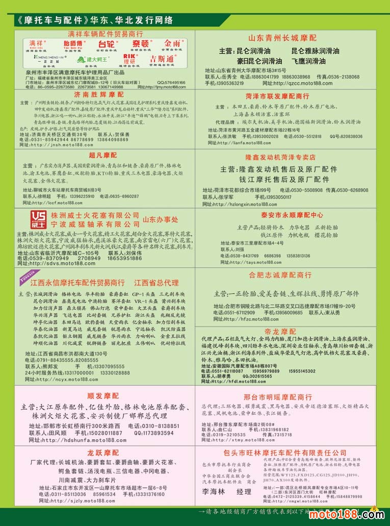 目前秋老虎終于收起了淫威,大部分地區(qū)氣候也慢慢地恢復(fù)到常態(tài),我們行業(yè)銷售的季節(jié)也開始了。我們雜志也從這個(gè)月開始出雙刊即半月一刊,由于是雙期,這一期的雜志相對(duì)較薄。完成全國(guó)摩配會(huì)議后,雜志還將根據(jù)行業(yè)具體情況作調(diào)整。受大環(huán)境的影響,尤其是國(guó)外市場(chǎng)的影響,今年的外貿(mào)形勢(shì)較去年相比形勢(shì)要差一些,在華南的外貿(mào)窗口也有所反映。從我們走訪的市場(chǎng)來(lái)看,盡管內(nèi)銷不旺,我們的北方市場(chǎng)(西北、華北和東北)在疲軟之中發(fā)展,至少?gòu)耐庥^上來(lái)說(shuō),不少市場(chǎng)面貌比以往有新的變化,這是市場(chǎng)的亮點(diǎn)。行業(yè)的冬季是這樣,那行業(yè)的春天會(huì)怎么樣呢?今年的秋季全國(guó)摩配展示交易會(huì)將在十月下旬南京召開,從會(huì)展的招展形勢(shì)來(lái)看,行業(yè)依然踴躍參與,包括明年春天在西安的全國(guó)摩配會(huì)議。從這么多企業(yè)的參與來(lái)看,行業(yè)同仁依然有一種精神在支持他們,不管市場(chǎng)的風(fēng)風(fēng)雨雨,我自巋然不動(dòng)。