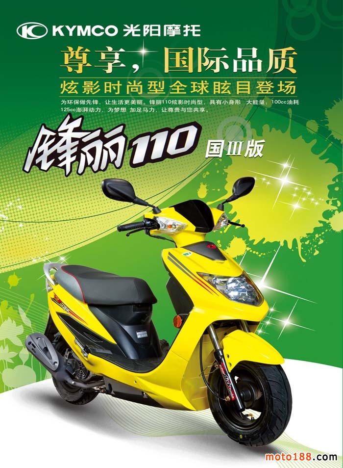 光陽本著 "Better than Best" 的企業(yè)宗旨,正式向全世界宣布,我們期望以提供KYMCO優(yōu)質的動力商品與技術服務為使命,啟動人類的生活動力,讓擁有國際品牌的KYMCO帶領您進入便利、安全、休閑、娛樂的動力世界。