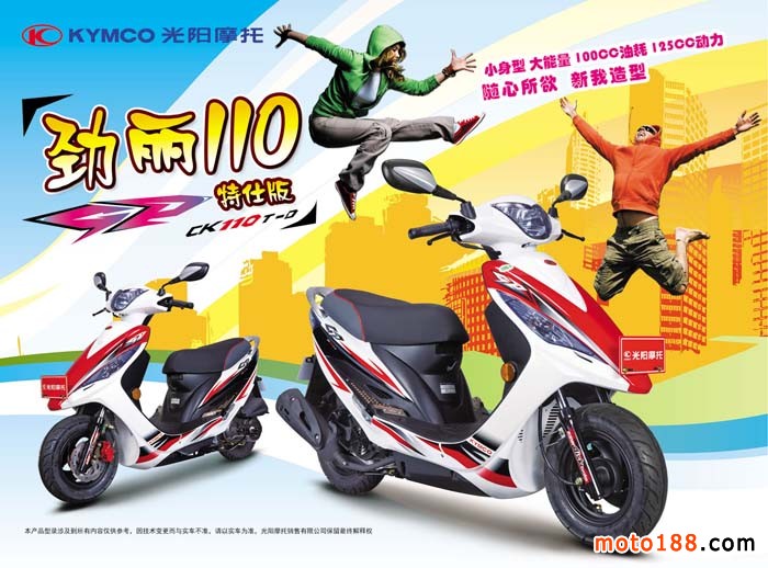 光陽本著 "Better than Best" 的企業(yè)宗旨,正式向全世界宣布,我們期望以提供KYMCO優(yōu)質(zhì)的動力商品與技術(shù)服務(wù)為使命,啟動人類的生活動力,讓擁有國際品牌的KYMCO帶領(lǐng)您進(jìn)入便利、安全、休閑、娛樂的動力世界。