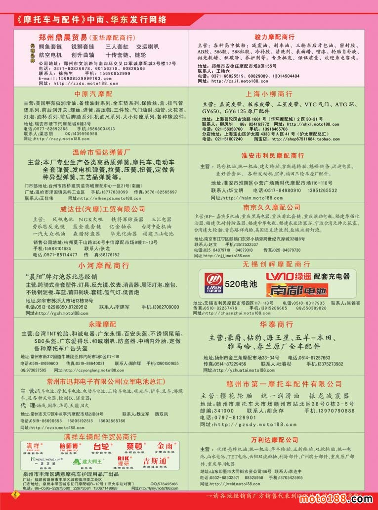 回想這幾年市場的變化,摩托車及配件制造業(yè)從造摩托車到部分轉(zhuǎn)為造電動車。這二年農(nóng)用三輪摩托車的需求量較大,很快一部分企業(yè)轉(zhuǎn)產(chǎn)三輪車及配件。在通機行業(yè),重慶國營和民營,尤其是民營企業(yè)發(fā)展神速,有的企業(yè)年產(chǎn)量達1-2百萬臺,而且還是以歐美等發(fā)達國家市場為主。這讓我們不得不佩服這些企業(yè)雖然在市場邊緣中生存,卻還做得風生水起。與通機制造業(yè)蒸蒸日上形成反差,通機國內(nèi)市場才剛剛發(fā)育。我們利用去全國市場的機會,也順帶去了一下機電五金等市場。目前在全國還沒有形成完整成形的專業(yè)銷售市場,通機部件更是沒成氣候。這為我們摩配市場經(jīng)營,注入了新的經(jīng)營項目,豐富了摩配市場的內(nèi)涵,這是一個新的藍海。這幾年摩托車配件經(jīng)營利潤越來越薄,市場越來越殘酷,我們向行業(yè)提供這樣的信息,希望給企業(yè)能有所啟迪,在市場的邊緣開拓市場、發(fā)展市場、完善市場。通過這一期的嘗試,我們試水通機市場,以后我們會更加關(guān)注這個市場的變化,如能形成一定的國內(nèi)市場,我們將完善我們的服務(wù)形式,用傳統(tǒng)紙媒和網(wǎng)媒來服務(wù)于這個市場。