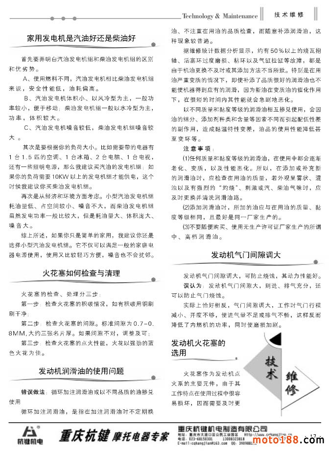 本期《摩托車與配件》雜志為小型汽油機專輯,這似乎與摩托車配件不太相關(guān),但我們還是用心地去組織了與通機行業(yè)有關(guān)的技術(shù)、標(biāo)準及資訊類的文章。我們編纂這個專輯也是有以下各方面的原因: