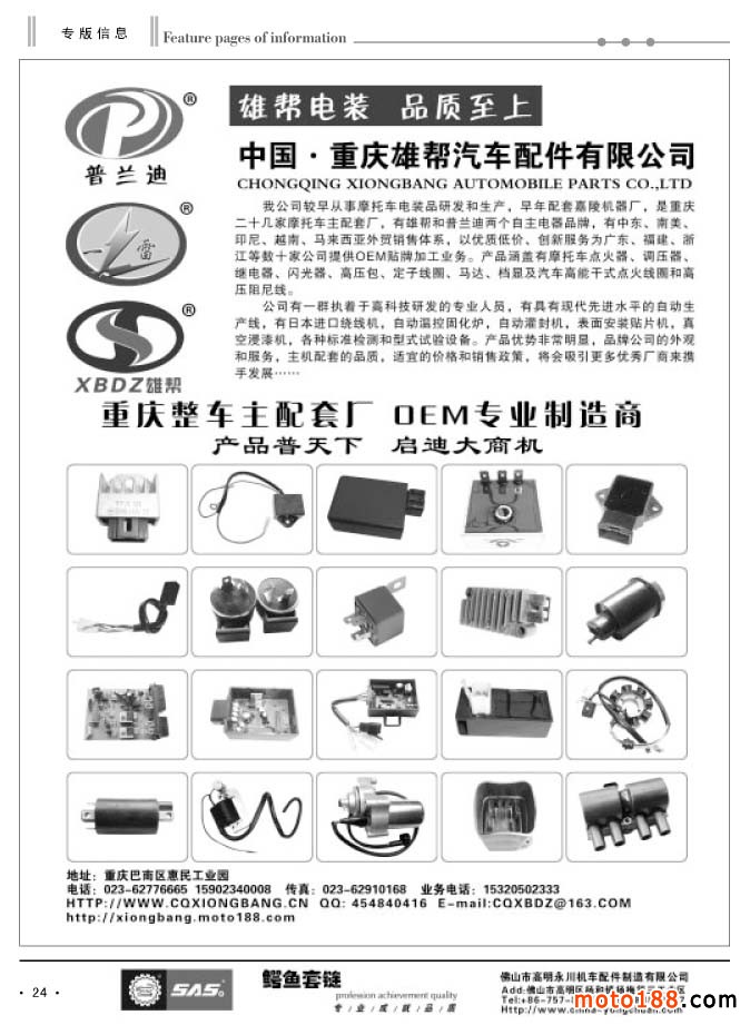 回想這幾年市場的變化,摩托車及配件制造業(yè)從造摩托車到部分轉(zhuǎn)為造電動車。這二年農(nóng)用三輪摩托車的需求量較大,很快一部分企業(yè)轉(zhuǎn)產(chǎn)三輪車及配件。在通機行業(yè),重慶國營和民營,尤其是民營企業(yè)發(fā)展神速,有的企業(yè)年產(chǎn)量達(dá)1-2百萬臺,而且還是以歐美等發(fā)達(dá)國家市場為主。這讓我們不得不佩服這些企業(yè)雖然在市場邊緣中生存,卻還做得風(fēng)生水起。與通機制造業(yè)蒸蒸日上形成反差,通機國內(nèi)市場才剛剛發(fā)育。我們利用去全國市場的機會,也順帶去了一下機電五金等市場。目前在全國還沒有形成完整成形的專業(yè)銷售市場,通機部件更是沒成氣候。這為我們摩配市場經(jīng)營,注入了新的經(jīng)營項目,豐富了摩配市場的內(nèi)涵,這是一個新的藍(lán)海。這幾年摩托車配件經(jīng)營利潤越來越薄,市場越來越殘酷,我們向行業(yè)提供這樣的信息,希望給企業(yè)能有所啟迪,在市場的邊緣開拓市場、發(fā)展市場、完善市場。通過這一期的嘗試,我們試水通機市場,以后我們會更加關(guān)注這個市場的變化,如能形成一定的國內(nèi)市場,我們將完善我們的服務(wù)形式,用傳統(tǒng)紙媒和網(wǎng)媒來服務(wù)于這個市場。