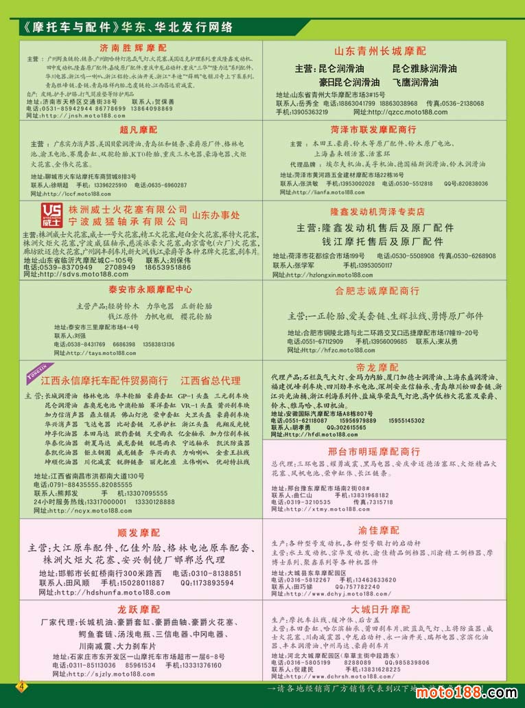 第三十三屆秋季全摩配也將于本月24-26日在南京國際會展中心召開,這是行業(yè)秋季大點兵。按照組委會的要求,大會的會刊將在本月15日抵達展館,所以也必須在國慶過后就得送去印刷。在今年秋季南京全摩會,我們還將為參會企業(yè)和觀展的經(jīng)銷商,贈送新版《華東市場指南》,由廣州工作站承制的《廣州市場導(dǎo)購指南》,今年第三期《摩托車與配件外貿(mào)報》,今年十月上、下期《摩托車與配件》雜志,以及部分庫存書——《中國摩托車配件生產(chǎn)企業(yè)大全》?!杜浼a(chǎn)企業(yè)大全》上半年在濟南首發(fā),目前除湖南、湖北及山西、廣西、河北部分市場沒有發(fā)放外,其余市場基本都是送書上門;還有部分省級市場由雜志發(fā)行點代理發(fā)送;沒有收到這本書的以及不在摩配市場的企業(yè)請到我們南京展位C89領(lǐng)??;還有《華南、三北、西南》三個市場的指南,也在會上發(fā)送。因為庫存的書不多,需要這些書的企業(yè)請盡量早去我們展位領(lǐng)取,送完即止。