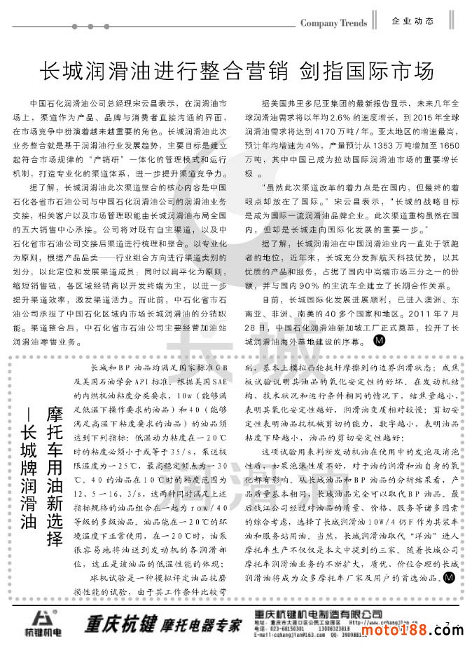 隨著秋季全摩會(huì)的召開(kāi),行業(yè)也進(jìn)入到收宮之戰(zhàn)。我們雜志也在謀兵布局于明年,初步打算,明年雜志采用全彩色印刷;雜志還以月刊出版,即一月一期。今年做了增刊的嘗試,上半年雜志較薄,下半年明顯厚實(shí)了,但我們還是尊重行業(yè)大部分人的意見(jiàn),調(diào)整為月刊。會(huì)上我們也希望大家多提建設(shè)性的改進(jìn)意見(jiàn),把行業(yè)碩果僅存的雜志做得更好。目前我們?cè)谛袠I(yè)沒(méi)有參照的樣板,我們只有摸索著石頭過(guò)河。在今年行業(yè)大環(huán)境不好的狀況下,我們的雜志增加了行業(yè)產(chǎn)業(yè)延伸的專題報(bào)道,如:小型通機(jī)、三輪摩托車等。希望企業(yè)能在這些信息中,發(fā)現(xiàn)新的商機(jī),走創(chuàng)新發(fā)展之路,為企業(yè)爭(zhēng)取更多的發(fā)展空間。