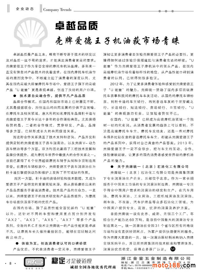 隨著秋季全摩會(huì)的召開,行業(yè)也進(jìn)入到收宮之戰(zhàn)。我們雜志也在謀兵布局于明年,初步打算,明年雜志采用全彩色印刷;雜志還以月刊出版,即一月一期。今年做了增刊的嘗試,上半年雜志較薄,下半年明顯厚實(shí)了,但我們還是尊重行業(yè)大部分人的意見(jiàn),調(diào)整為月刊。會(huì)上我們也希望大家多提建設(shè)性的改進(jìn)意見(jiàn),把行業(yè)碩果僅存的雜志做得更好。目前我們?cè)谛袠I(yè)沒(méi)有參照的樣板,我們只有摸索著石頭過(guò)河。在今年行業(yè)大環(huán)境不好的狀況下,我們的雜志增加了行業(yè)產(chǎn)業(yè)延伸的專題報(bào)道,如:小型通機(jī)、三輪摩托車等。希望企業(yè)能在這些信息中,發(fā)現(xiàn)新的商機(jī),走創(chuàng)新發(fā)展之路,為企業(yè)爭(zhēng)取更多的發(fā)展空間。