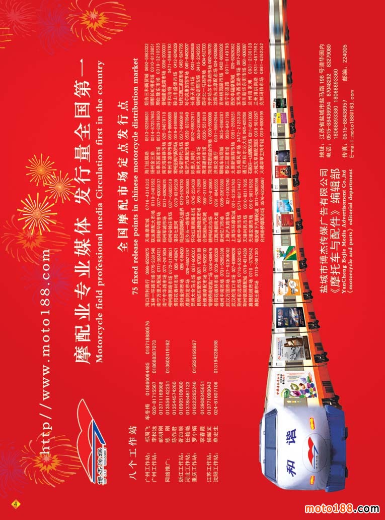 同時(shí)還有今年新編的第四期《中國摩托車配件外貿(mào)報(bào)》,本報(bào)除在省會(huì)市場發(fā)行之外,在廣州和重慶的市場都設(shè)有報(bào)架,讓客戶隨手取閱。本次報(bào)紙和雜志將會(huì)一起派送。今年的全摩會(huì)《會(huì)刊》仍然由中汽組委會(huì)派發(fā),在進(jìn)門口領(lǐng)參展證的同時(shí),領(lǐng)取《會(huì)刊》,我們只負(fù)責(zé)制作,組委會(huì)負(fù)責(zé)發(fā)行。