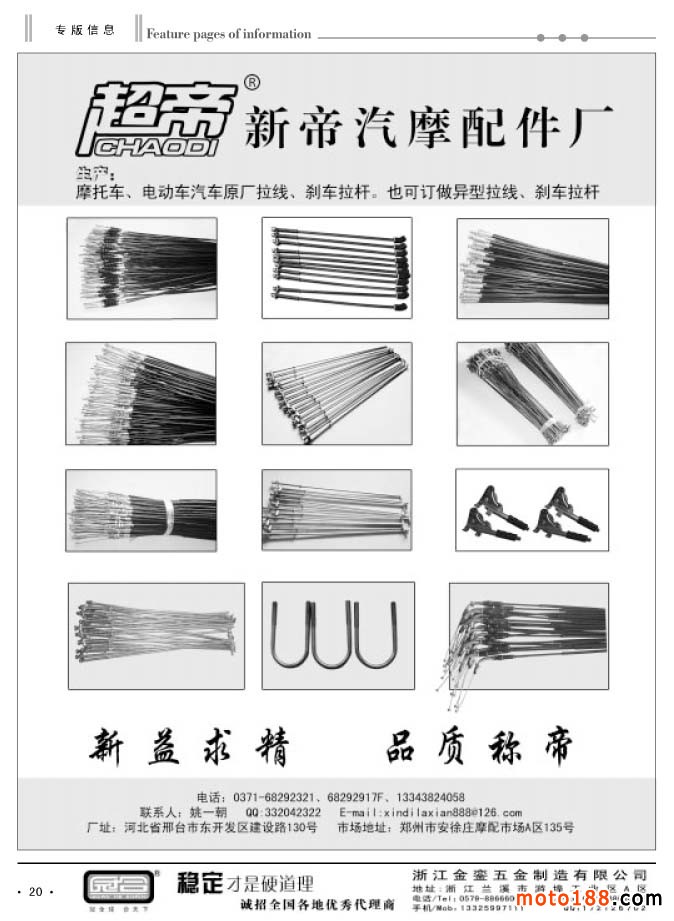 同時還有今年新編的第四期《中國摩托車配件外貿(mào)報》,本報除在省會市場發(fā)行之外,在廣州和重慶的市場都設(shè)有報架,讓客戶隨手取閱。本次報紙和雜志將會一起派送。今年的全摩會《會刊》仍然由中汽組委會派發(fā),在進(jìn)門口領(lǐng)參展證的同時,領(lǐng)取《會刊》,我們只負(fù)責(zé)制作,組委會負(fù)責(zé)發(fā)行。