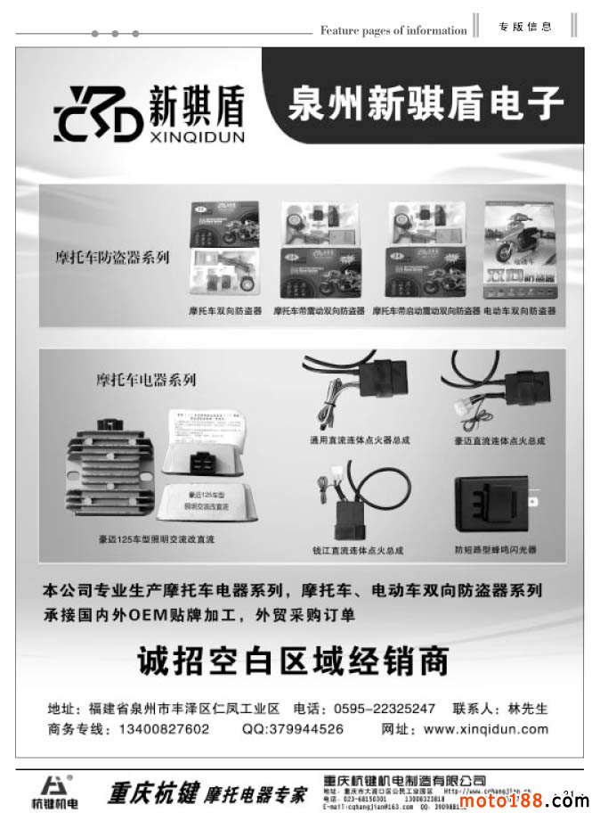 同時還有今年新編的第四期《中國摩托車配件外貿(mào)報》,本報除在省會市場發(fā)行之外,在廣州和重慶的市場都設(shè)有報架,讓客戶隨手取閱。本次報紙和雜志將會一起派送。今年的全摩會《會刊》仍然由中汽組委會派發(fā),在進(jìn)門口領(lǐng)參展證的同時,領(lǐng)取《會刊》,我們只負(fù)責(zé)制作,組委會負(fù)責(zé)發(fā)行。